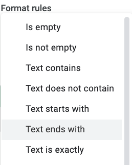 - 從 **格式規則** 下拉選單中選擇 **文字以...結尾** 選項
