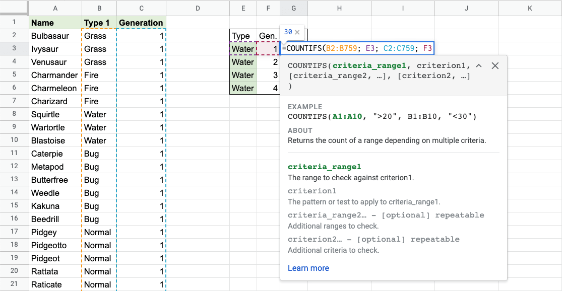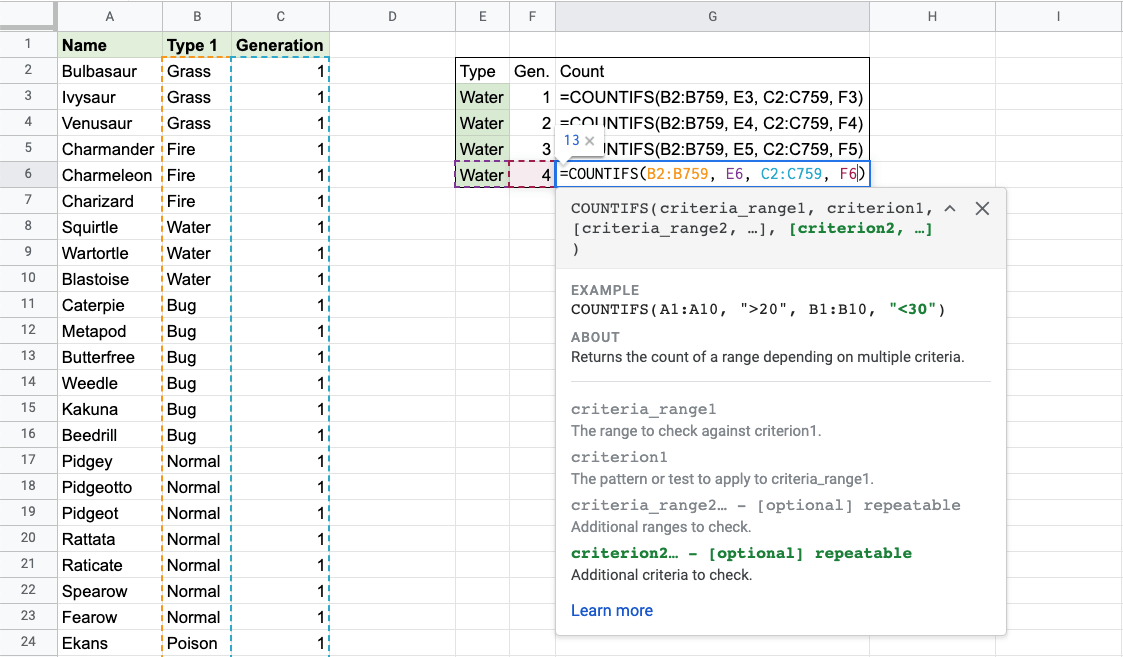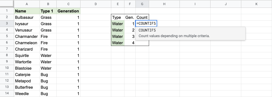 Google Sheets COUNTIFS 函式
