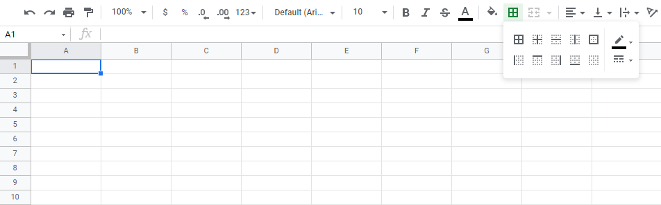 可以使用不同的顏色和樣式新增邊框。邊框按鈕會記住上次使用的邊框設定。選項可以從邊框按鈕旁邊的邊框選項按鈕訪問。