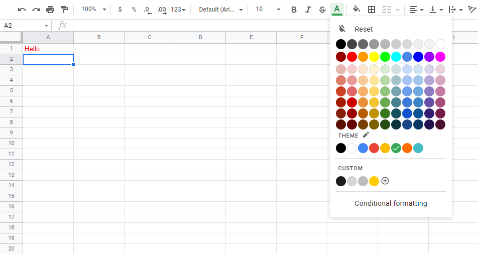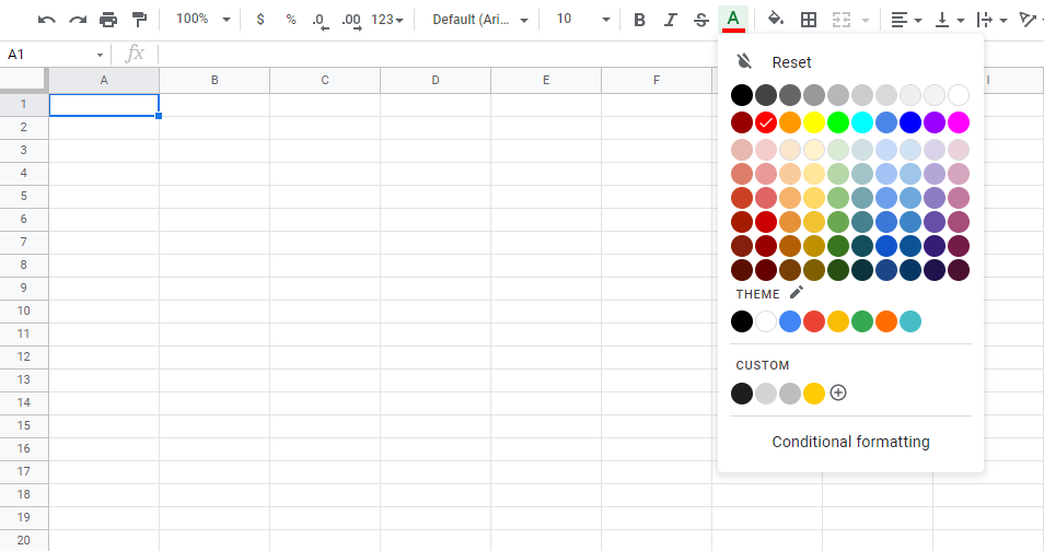 注意:自定義顏色以相同的方式應用於單元格和字型。您可以在 應用單元格顏色章節 閱讀更多相關內容。