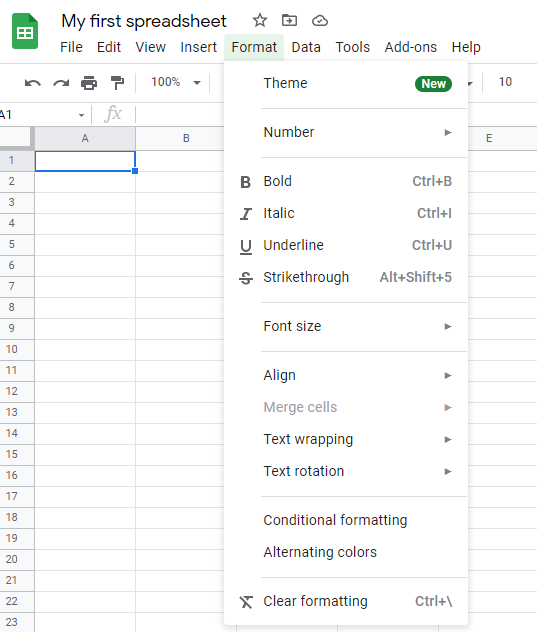 您也可以選擇任何單元格或單元格範圍,然後單擊選單欄中的 格式 選單