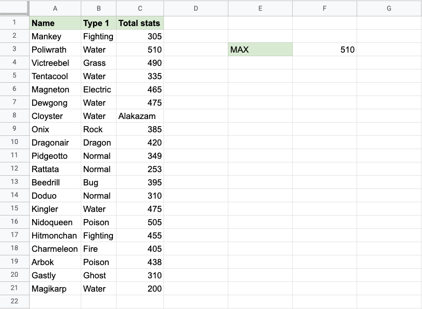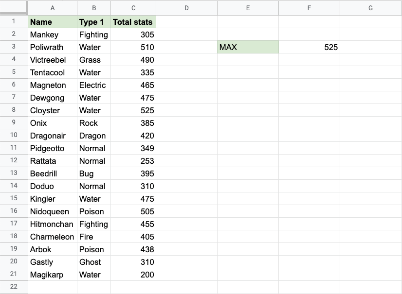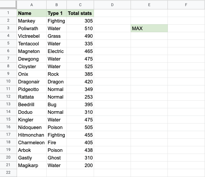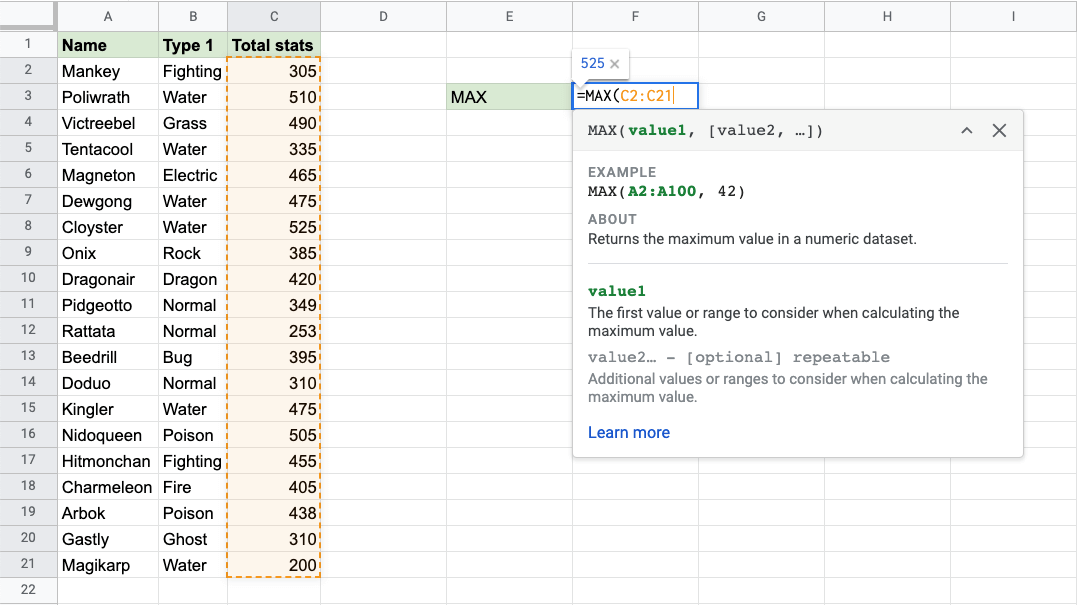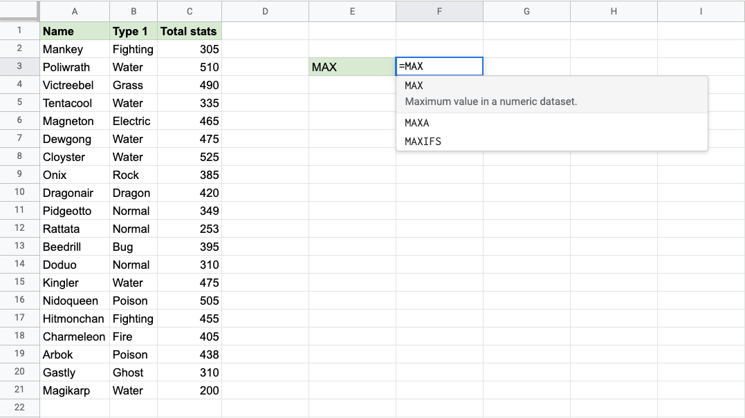 MAX 函式是 Google Sheets 中的一個預設函式,用於查詢範圍內的最高數字。