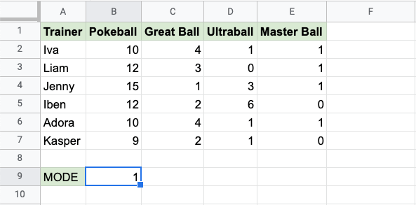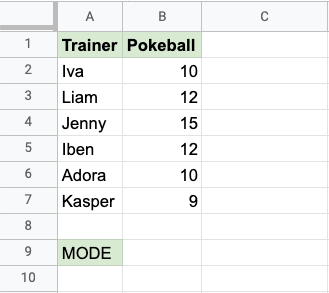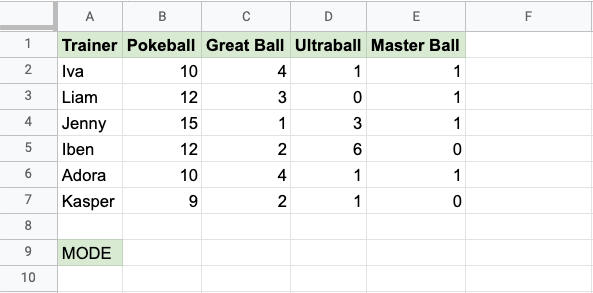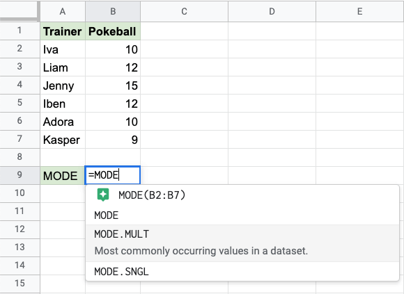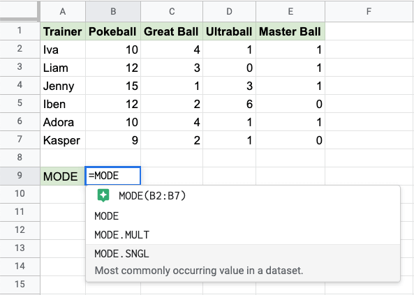 MODE 函式是 Google Sheets 中的一個預置函式,用於查詢最常見的值。