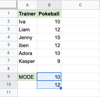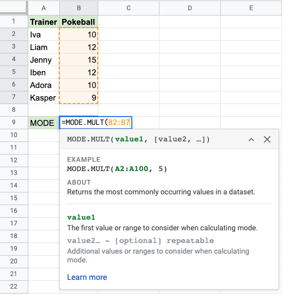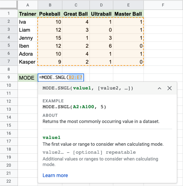Google Sheets MODE Function