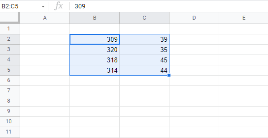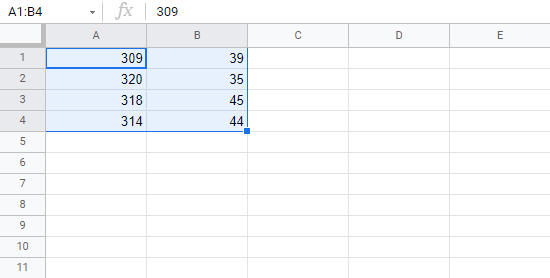 讓我們先輸入或複製一些值,以便我們可以進行操作