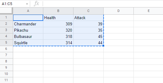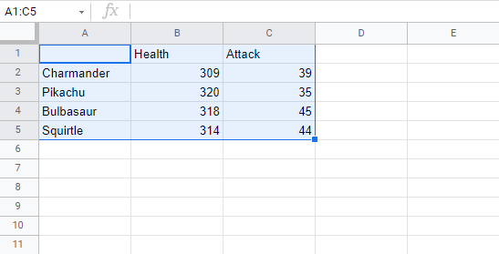 接下來,讓我們刪除原始資料並保留 A1:C5