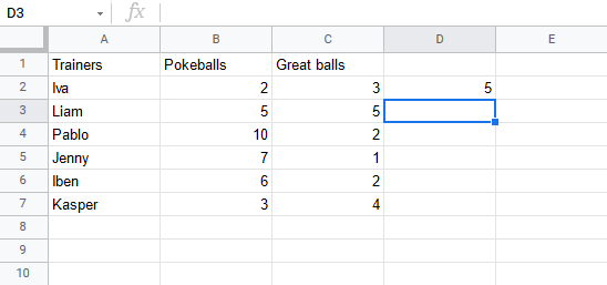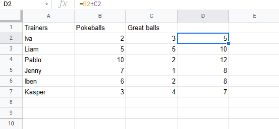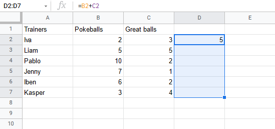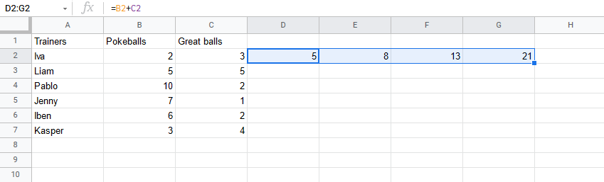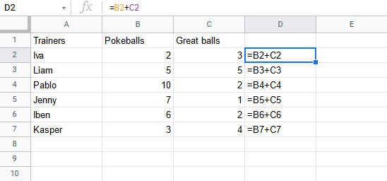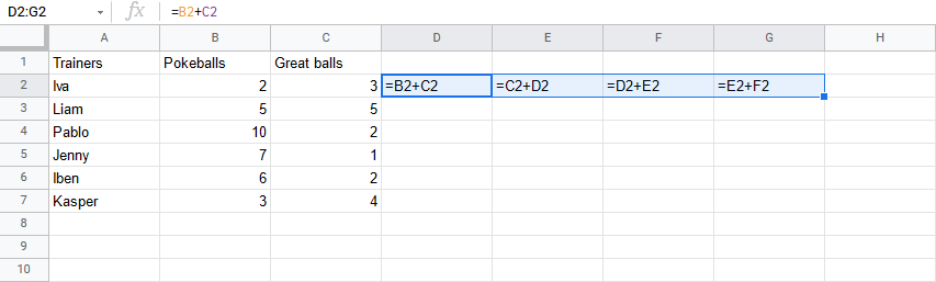 讓我們來看一個相對引用示例,幫助寶可夢訓練師計算他們的精靈球(B2:B7
