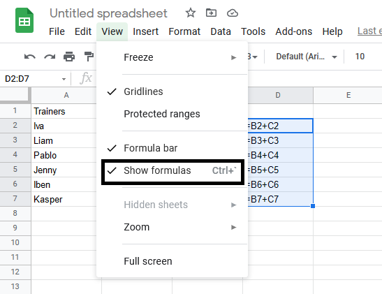 中的公式。您可以透過點選檢視選單並選擇顯示公式來執行此操作。