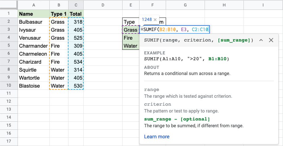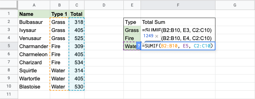 SUMIF 函式是 Google Sheets 中的一個預設函式,用於根據真或假的條件計算範圍內值的總和。