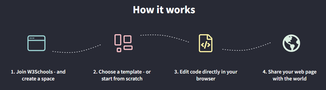 W3Schools 建立了一個易於使用的程式碼編輯器,名為W3Schools Spaces。註冊後,只需點選幾下即可開始。