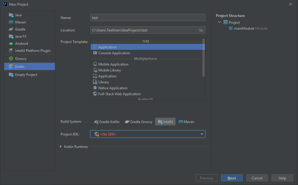 然後,點選左側選單中的“Kotlin”,並輸入您的專案名稱。