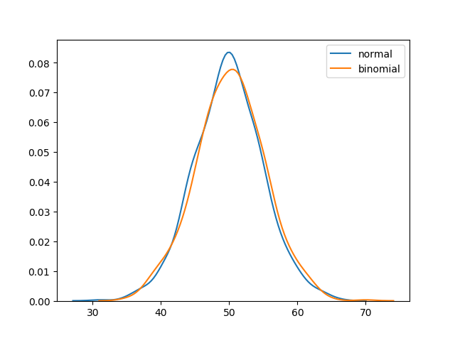 主要區別在於正態分佈是連續的,而二項式分佈是離散的,但如果有足夠多的資料點,它將與具有特定位置和尺度的正態分佈非常相似。