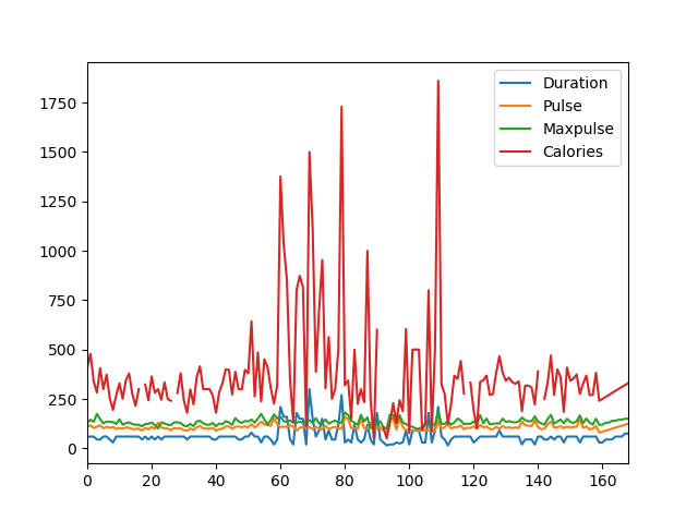 在下面的示例中,我們將使用“Duration”作為 x 軸,“Calories”作為 y 軸。