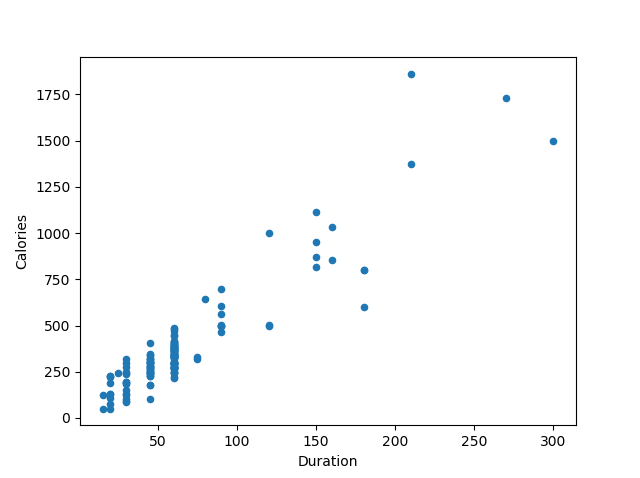 請記住: 在前面的示例中,我們瞭解到“Duration”和“Calories”之間的相關性為 0.922721