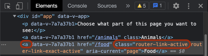 正如您在上面的截圖中看到的,Vue 還會跟蹤哪個元件是活動元件,併為活動的 <router-link>